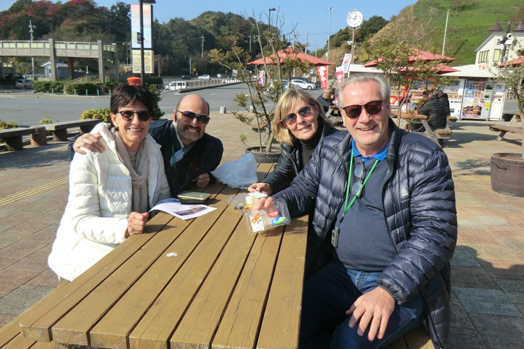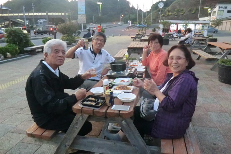 東大阪市の宇藤様(72歳)ご夫妻(手前)、倉敷市の田渕様(70歳)ご夫妻(奥)お食事中に大変失礼しました。